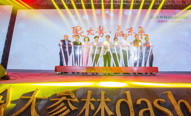 ladbrokes立博药业集团董事长刘景萍女士与大参林医药集团董事长柯云峰先生、中国医药商业协会执行会长付明仲女士等嘉宾共同开启了“聚大势•赢未来"大参林工商合作峰会的大幕。